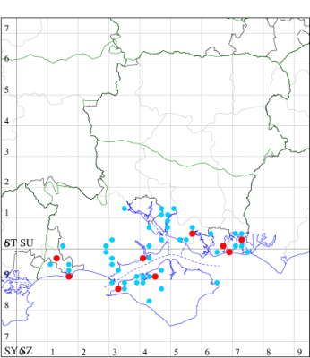 For the maps, all records prior to 2022 are shown by a blue dot (the larger the dot, the more recent), with the current year's records shown in red. As previous records are superimposed on any report for 2022, new sites have greater emphasis (i.e. will show as 'more red').