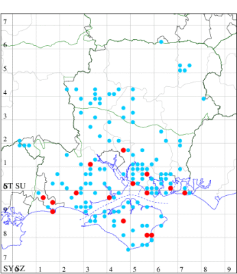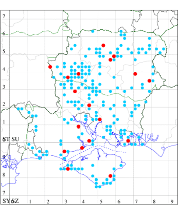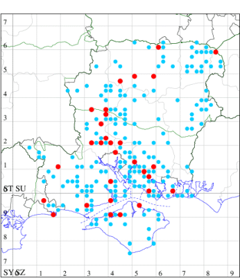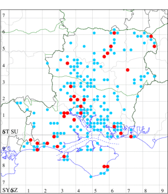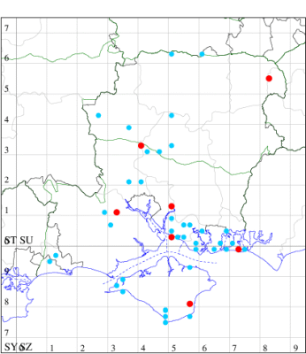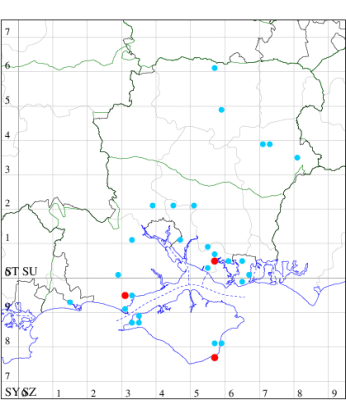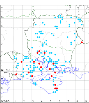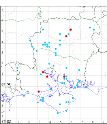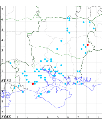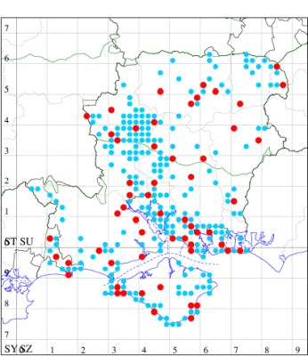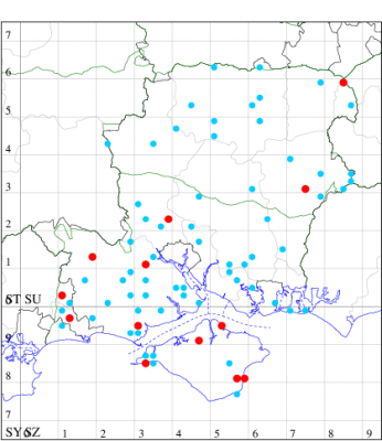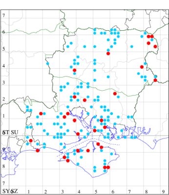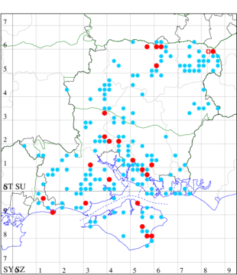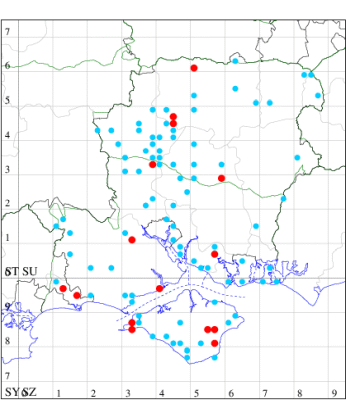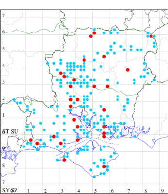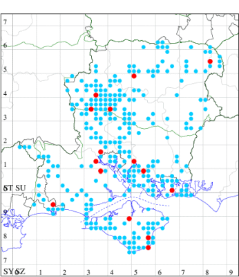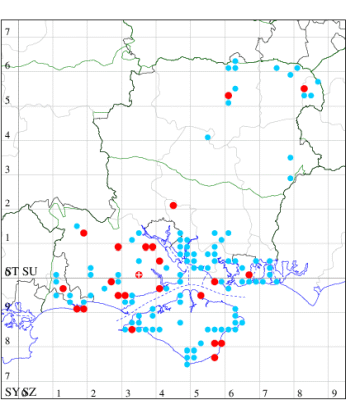 VC11: Hasley, NF, present, 19 Jul (AMD); Marchwood, one, 23 Jul; one, 14 Jul; one, 19 Jul; one, 23 Jul (CTha); Woodlands, NF, present, 01 Aug (RBW); one, 31 Jul (CJon); Totton, one, 21 Jul (LHan); Romsey, one, 05 May; one, 23 Jul (NRJ); Needs Ore NNR, one, 20 Aug (CNB); Allbrook, one, 29 Jul; one, 30 Jul; two, 01 Aug (SIng); Brownwich cliffs, three, 29 Jul (MLO, DWal, KJW); Funtley, one, 21 Jul; one, 04 Aug (TDC); Fareham, one, 05 Aug (IMcP); West Meon, one, , 06 May (RJD, MLO, DWal, KJW); Hurn, two, 23 Jul; one, 24 Jul; three, 02 Aug; one, 12 Aug; one, 13 Aug; Hengistbury Head, one, 01 Aug (MJef);