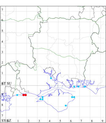 VC11: Earliest: Allbrook, 19 May, 1 (SIng) Latest: Hengistbury Head, 29 Aug, 1 (RPH) Max count: Chilling cliffs, W of Brownwich cliffs, 17 Jun, 10 (RJD, MLO, ADT, DWal, KJW)