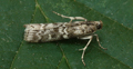 Common in rough ground and meadows throughout England and Ireland. Widespread and fairly common in Hampshire and on the Isle of Wight. Wingspan 22-27 mm. This easiest of the Phycitodes to identify, more robust than its congeners and more strongly marked, with the three dots well-developed and characteristically placed [Goater]. Larva feeds within flowerheads of Thistle, Tansy and Mugwort.