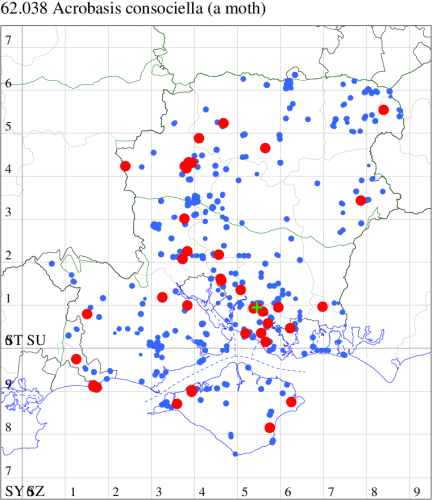 VC11: Marchwood, one, 25 Jun (CTha); Mottisfont, one, 11 Jul; one, 14 Jul (TSto); Botley, one, 07 Jun; one, 09 Jul; one, 12 Jul; one, 16 Jul; one, 30 Jul (SLB); Portsmouth, one, 26 Jun (IRT); Hengistbury Head NNR, one, 24 Jun; one, 25 Jun (RPH); one, 30 Jun (BKin det. MJef); two, 12 Jul (RPH); Hengistbury Head, one, 30 Jul (MJef); Burton, nr Christchurch, one, 11 Jun (JStw);