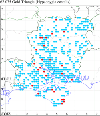 VC11: Marchwood, one, 26 Jul; one, 05 Aug (CTha); Beaulieu Heath, NF, present, field observation, 22 Jul (CBel); Totton, one, 18 Jun; one, 07 Jul; one, 08 Jul; one, 14 Jul; three, 15 Jul; three, 16 Jul; one, 18 Jul; six, 19 Jul; nine, 21 Jul; seven, 22 Jul; one, 28 Jul; four, 01 Aug; two, 02 Aug; one, 04 Aug; two, 02 Sep; one, 15 Sep; one, 08 Oct (LHan); Swaythling, Southampton, one, 13 Jun (MEdg); Allbrook, one, 17 Jul; one, 11 Aug; one, 07 Oct (SIng); Lee-on-Solent, one, 26 Aug (IHrg); Fareham, one, 25 Jun; one, 29 Jun; one, 26 Aug; one, 30 Aug (ADT); one, 16 Jun; one, 21 Jul; one, 20 Aug (IMcP); one, 27 Jul; one, 14 Aug; one, 16 Sep (MLO); one, 02 Jun; one, 09 Jun; one, 16 Jun; one, 19 Jul; one, 21 Jul; one, 22 Jul; one, to light, 23 Jul; one, to light, 31 Jul; one, to light, 14 Aug; one, to light, 16 Aug; one, to light, 25 Aug; one, to light, 26 Aug; one, to light, 06 Sep; one, to light, 22 Sep; one, to light, 07 Oct (KJW); Botley, one, 16 Aug; one, 24 Jun (SLB); Portsmouth, one, 04 Jul; two, 16 Jul; two, 10 Aug (IRT);