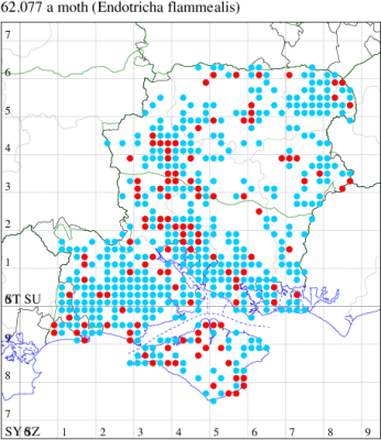 For the maps, all records prior to 2021 are shown by a blue dot (the larger the dot, the more recent), with the current year's records shown in red. As previous records are superimposed on any report for 2021, new sites have greater emphasis (i.e. will show as 'more red').