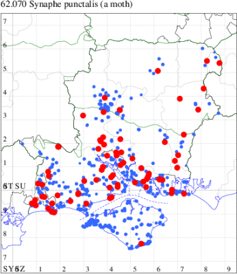 VC11: Earliest: Swaythling, Southampton, 10 Jun, 1 (MEdg) Latest: Allbrook, 11 Oct, 1 (SIng) Max count: Needs Ore NNR, 02 Jul, 61 (PCra)