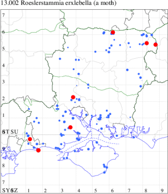 For the maps, all records prior to 2023 are shown by a blue dot (the larger the dot, the more recent), with the current year's records shown in red. As previous records are superimposed on any report for 2023, new sites have greater emphasis (i.e. will show as 'more red').