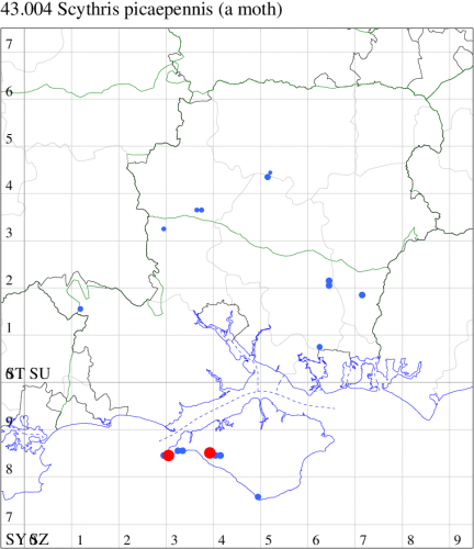 Vulnerable (proposed as a future Red Data Book species) and restricted in the UK to sandy heathland in Dorset and Hampshire. In Hampshire reliably recorded only from heathland near Lyndhurst. Not recorded from the Isle of Wight to date. Wingspan 8-10 mm. Best found by slowly sweeping the hand over carpets of the foodplant (MBGBI Vol 4 part 1). Larva feeds on Heather, Bell Heather and Cross-leaved Heath, living within a silken tube.