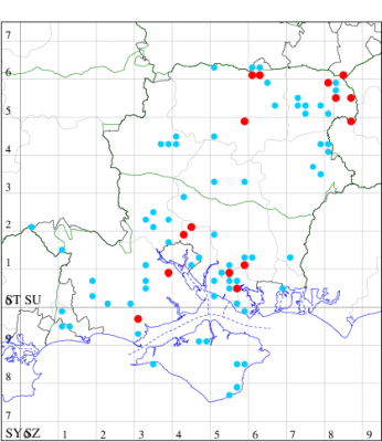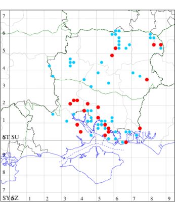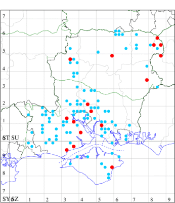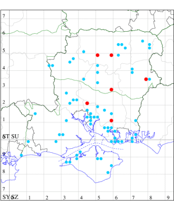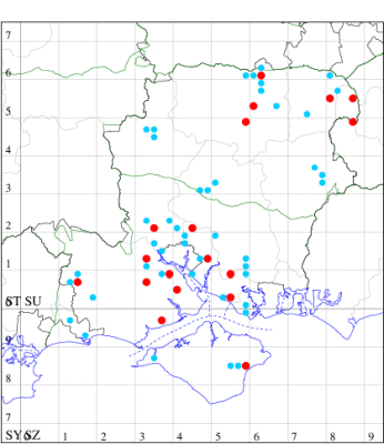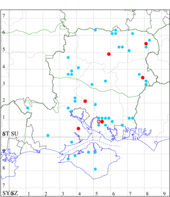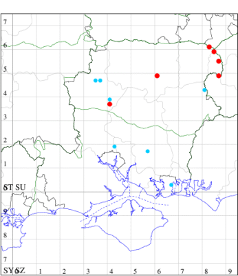 For the maps, all records prior to 2022 are shown by a blue dot (the larger the dot, the more recent), with the current year's records shown in red. As previous records are superimposed on any report for 2022, new sites have greater emphasis (i.e. will show as 'more red').
