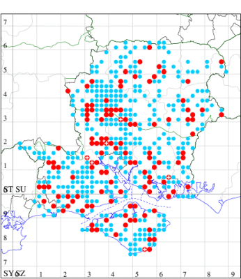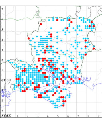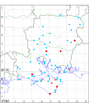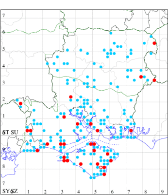 For the maps, all records prior to 2022 are shown by a blue dot (the larger the dot, the more recent), with the current year's records shown in red. As previous records are superimposed on any report for 2022, new sites have greater emphasis (i.e. will show as 'more red').