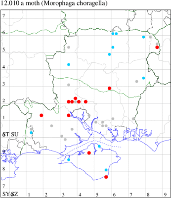 VC11: Hasley, NF, present, 19 Jul (AMD); Totton, one, 13 Jul (LHan); Romsey, one, 18 Jun (SRC); one, 13 Jul (MJB); one, 07 Jun (NRJ); Needs Ore NNR, one, 16 Jul (CNB); Vale Park, Chandler's Ford, one, 20 Jun (KArb); Allbrook, one, 12 Jul; one, 11 Aug; two, 01 Sep (SIng);