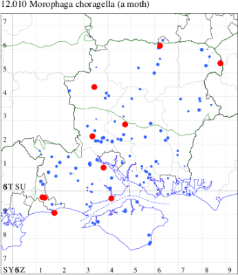 For species seen in 2023 that had less than or equal to 100 records, full details are included; for more common species, the earliest, latest and highest count by vice-county are shown. The narrative for each species is taken from the main Hantsmoths website, and it is possible that some information on abundance and occurrence can get out of date, as it is impossible to keep up with all changes; however it should give a good introduction to each species. The tables in each species account summarise the previous status, and that for the current year.