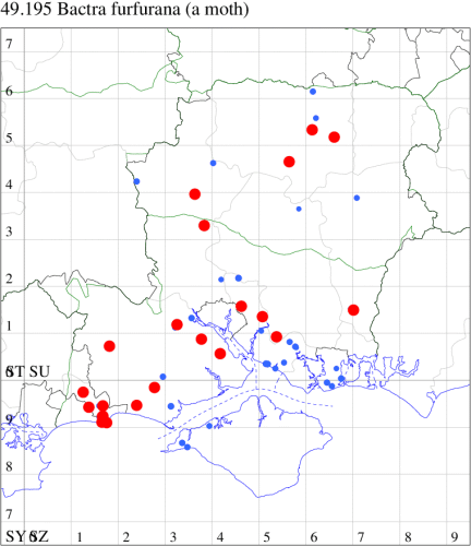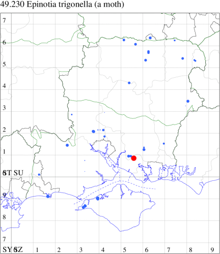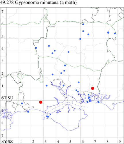 VC11: Marchwood, one, 31 Jul (CTha); Itchen Valley C.P., two, 19 Jul (F.M.G.); Stubbington, one, 29 Jun; one, 19 Jul (DPH); Lee-on-Solent, one, to pheromone lure, jAN Lure, 02 Jul (IHrg); Fareham, one, 20 Jul (ADT det. RJD); one, 30 Jul (IMcP); two, 25 Jun; one, 23 Jul (MLO det. RJD); Waterlooville, one, 30 Jul (DWhe); Christchurch: Cross Way, one, 26 Jun; one, 10 Jul (LPyk det. MJef); Tuckton, Bournemouth, one, 03 Jun (APard);