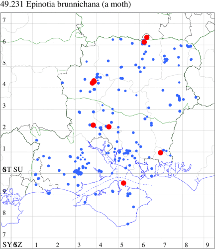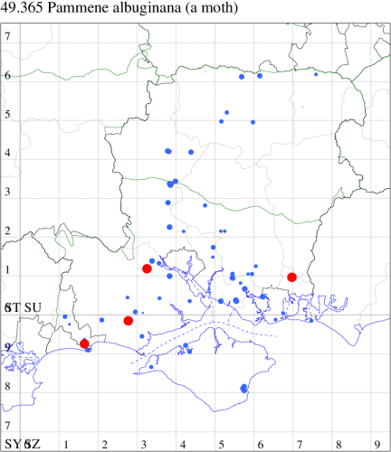 VC11: Romsey, one, 17 Jun (MJB); Allbrook, one, 18 Jul; one, 14 Aug (SIng); Funtley, one, 01 Jul (TDC); Waterlooville, one, 02 Jun; five, 04 Jun (DWhe); Merritown Heath, one, 29 Jun (DFoo); Hengistbury Head, three, 27 Aug; one, 03 Jun (MJef);