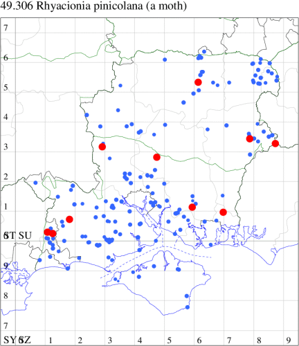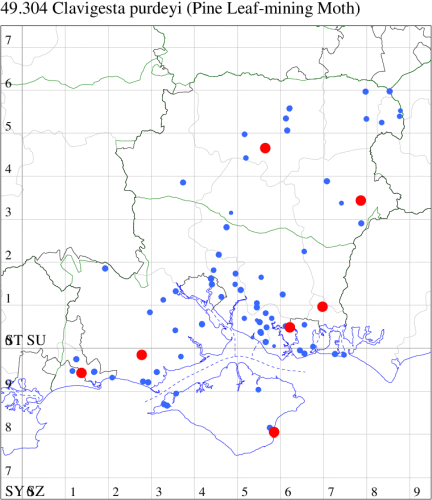 VC11: Woodlands, NF, one, 03 Jun (RBW); Waterlooville, four, to pheromone lure, to ARG lure at 6pm, 23 May; one, 25 May; one, aRG lure, 29 May; two, to pheromone lure, to SKI lure. Gen det, 06 Jun; one, 07 Jun (DWhe); Stanpit Marsh LNR, one, 22 Jun (PAB); Sway, one, conf MJW, 31 May (SKee det. MJW)