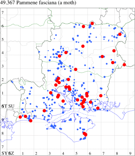 VC11: Marchwood, one, 03 Aug (TDCh); Romsey, one, 28 Aug (MJB); one, to pheromone lure, to FUN lure at 10.00, 12 May; one, to pheromone lure, to HYL lure, male, gen. det., 31 Jul; one, to pheromone lure, to HYL lure, male, gen. det., 11 Aug (NRJ det. DJG); Swaythling, Southampton, one, 24 Jun (MEdg); Allbrook, one, 16 Jun; one, 17 Jul; one, 23 Jul (SIng); Brownwich Cliffs, Titchfield, one, female det gen, 26 Jul (F.M.G. det. RJD); Stubbington, one, 25 Jun (DPH); Funtley, one, 29 May (TDC); Lee-on-Solent, one, to pheromone lure, jAN (1) & FUN (2) Lures, 30 Jun; one, 30 Jun; one, to pheromone lure, fUN Lure, 06 Jul; one, to pheromone lure, fUN Lure, 11 Jul (IHrg); Fareham, one, det gen, 26 Jun (MLO det. RJD); Portchester, two, 26 Jun (DH-J); Waterlooville, one, aRG lure, 29 May; one, 17 Jul (DWhe); Muscliffe, one, 19 Jun (CMur,MLan det. CMur); New Milton, one, 29 Jul (RPH); Sway, one, 19 Jul (SKee); Pennington, one, 09 Jul (RFC);