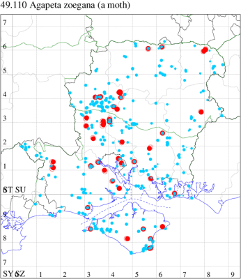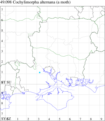 VC11: Woodlands, New Forest, present, 08 Jun (RBW); Romsey, one, 22 Jun (SLay); Kings Somborne, one, to actinic, 23 Jun (GCE); Romsey, one, 30 May (NRJ); Kings Somborne, one, to actinic, 09 Jul; one, to actinic, 31 Jul; Ashley, one, to actinic, 23 Jun; Kings Somborne, eight, to actinic, 15 Jun (GCE); Dibden Purlieu, one, 24 Aug; one, to actinic, 25 Aug (RAC); Allbrook, one, 02 Jun; two, 08 Jun; one, 15 Jun; one, 23 Jun; one, 24 Jun; one, 07 Sep; one, 14 Sep (SI); Kings Somborne, one, to actinic, 15 Jun; two, to actinic, 15 Jun (GCE); Catisfield, one, 23 Jun (ALR); Fareham, one, to actinic, 01 Jun; one, to actinic, 23 Jun (MLO); Botley, one, to actinic, 08 Jun (SLB); Hilltop, The Hangers, two, 01 Aug (SI); Wickham, one, 16 Jun; one, 24 Jun; one, 28 Jun; one, 26 Aug; one, 03 Sep (JRDS); Southsea, one, 03 Jul (JGe);