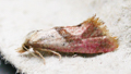 Nationally scarce (Nb) in dry, calcareous grassland in parts of southern England, southern Wales and on the Burren in Ireland. In Hampshire and on the Isle of Wight individuals occasionally turn up, mainly on calcareous soils. Wingspan 11-16 mm. The contrasting bright rose-pink and cream-white forewing coloration is characteristic; differs from C. roseana by the lighter median fascia of the forewing and the absence of a subapical line in the cilia [Bradley]. Larva feeds within seedheads of Field Scabious, over-wintering in a cocoon.