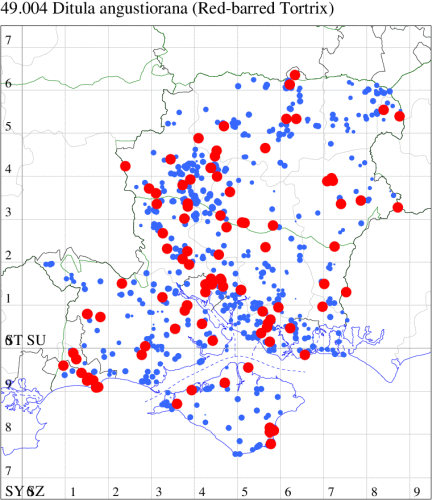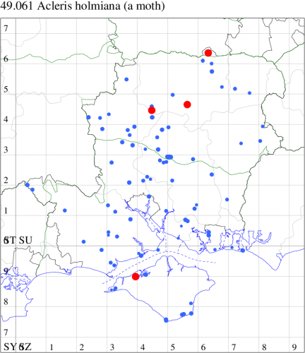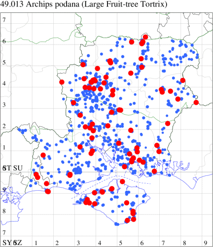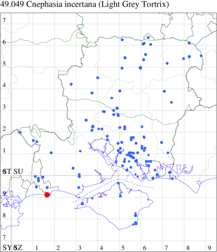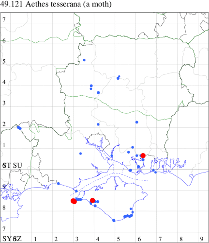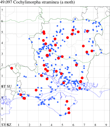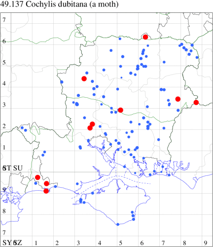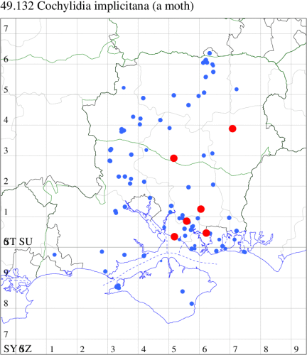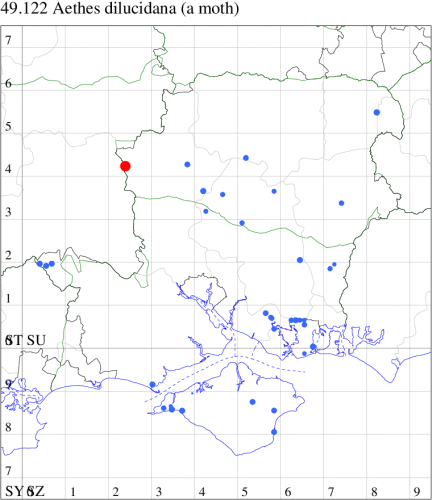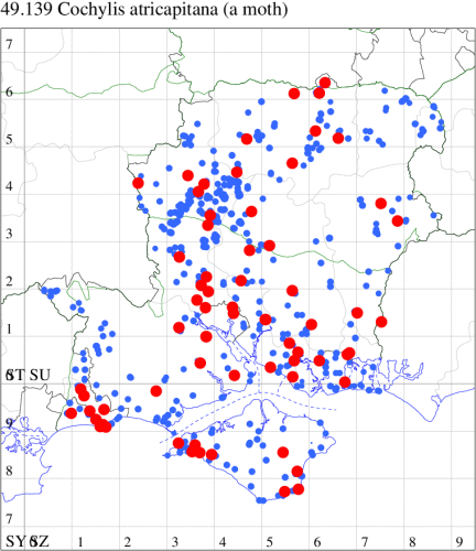 VC11: Romsey, one, 26 Jul (MJB); one, 30 Jul (NRJ); Hurn, one, 01 Aug; Hengistbury Head NNR, one, 05 Aug (MJef); one, 11 Aug (MoTay det. MJef); Burton, nr Christchurch, one, 12 Jul (JStw);
