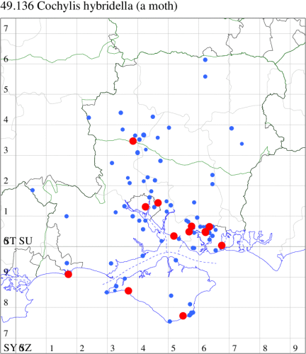 VC10: Earliest: Bonchurch, 15 Jun, 1 (JHa) Latest: Shanklin, 17 Sep, 1 (IOu) Max count: Osborne Wood, 01 Jul, 5 (IOu)