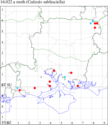 VC11: Marchwood, one, 14 Jul; present, 25 Jul (CTha); Stubbington, one, 26 Aug (DPH); Funtley, four, 07 Jul (TDC); Portsmouth, one, 13 Aug (IRT); Pennington, one, 11 Jul; one, 19 Jul (RFC); Needs Ore NNR, one, 07 Jun; two, 28 Jul; one, 06 Aug; seven, 13 Aug; two, 19 Aug; one, 02 Sep; two, 29 Jul (CNB);